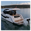 Lungh. FT 10,50 m Largh. 3,70 m Alt. cabina 1,90 m Peso 7500 kg Pescaggio 0,60 m Persone max ---- Classe IMCI CE B/C Cabine 2 | Toilettes 2 Posti letto 4+2 Carburante L. 500 L Acqua 500 l Acque nere 500 l Acque grigie 135 l Motorizzazione 2x250 / 2x500 |