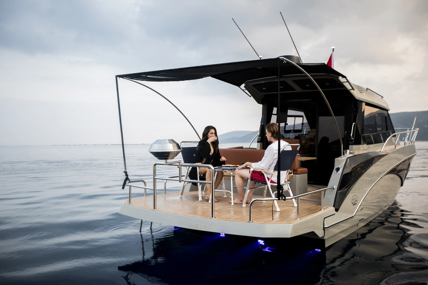 Lungh. FT 9,20 m Largh. 3,20 m Alt. cabina 1,85 m Peso 5500 kg Pescaggio 0,90 m Persone max ---- Classe IMCI CE B/C Cabine 2 | Toilettes 1 Posti letto 4+2 Carburante L. 250 L Acqua 250 l Acque nere 135 l Motorizzazione 1x350 / 2x200/350 |
